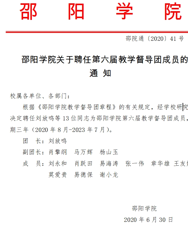 开云kaiyun登录入口关于聘任第六届教学督导团成员的通知