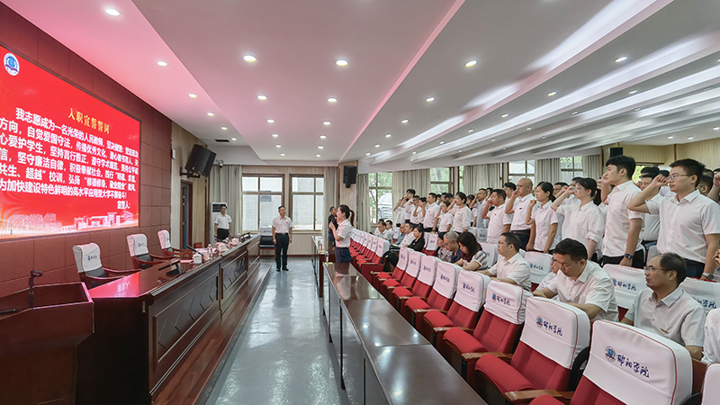 9 月 10 日是第 41 个教师节,开云官网在七里坪校区润德楼报告厅举行 2025 年新进教师入职仪式暨师德师风培训会。学校党委书记宁立伟,党委副书记、校长张平,党委副书记赵敏丽,各二级学院院长、老教师代表及新入职教师参加,仪式由赵敏丽主持。